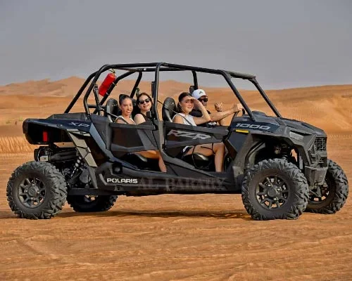 As night falls, indulge in a delicious BBQ buffet dinner with vegetarian and non-vegetarian options, along with unlimited soft drinks. The evening is made even more special with captivating live performances — including the vibrant Tanoura dance, mesmerizing belly dance, and an incredible fire show. Before heading back, capture group photos with your friends and family to cherish the memories of your best Desert Safari in Abu Dhabi.