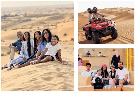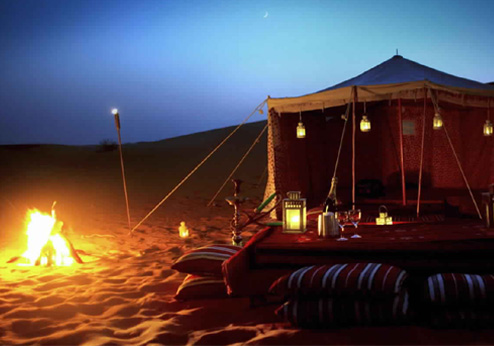 After dune bashing, we’ll stop for refreshments and give you the chance to witness a magical desert sunset — the perfect moment for stunning photos. We then head to our traditional Bedouin-style desert camp, where more cultural and fun activities await. Ride a camel, the “Ship of the Desert,” try sandboarding, and dress up in traditional Arabic attire for memorable photos. Ladies can enjoy elegant henna designs from our skilled henna artist.